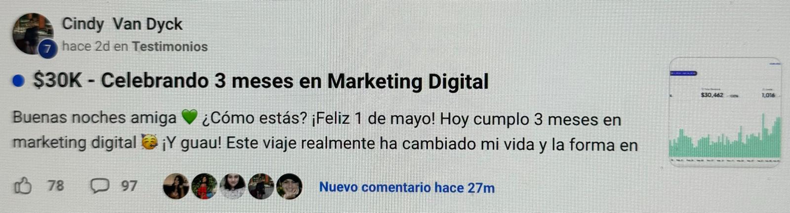Tendrás acceso a la comunidad del curso donde se realizan llamadas por Zoom 2 veces por semana para aclarar dudas y dar tips valiosos
